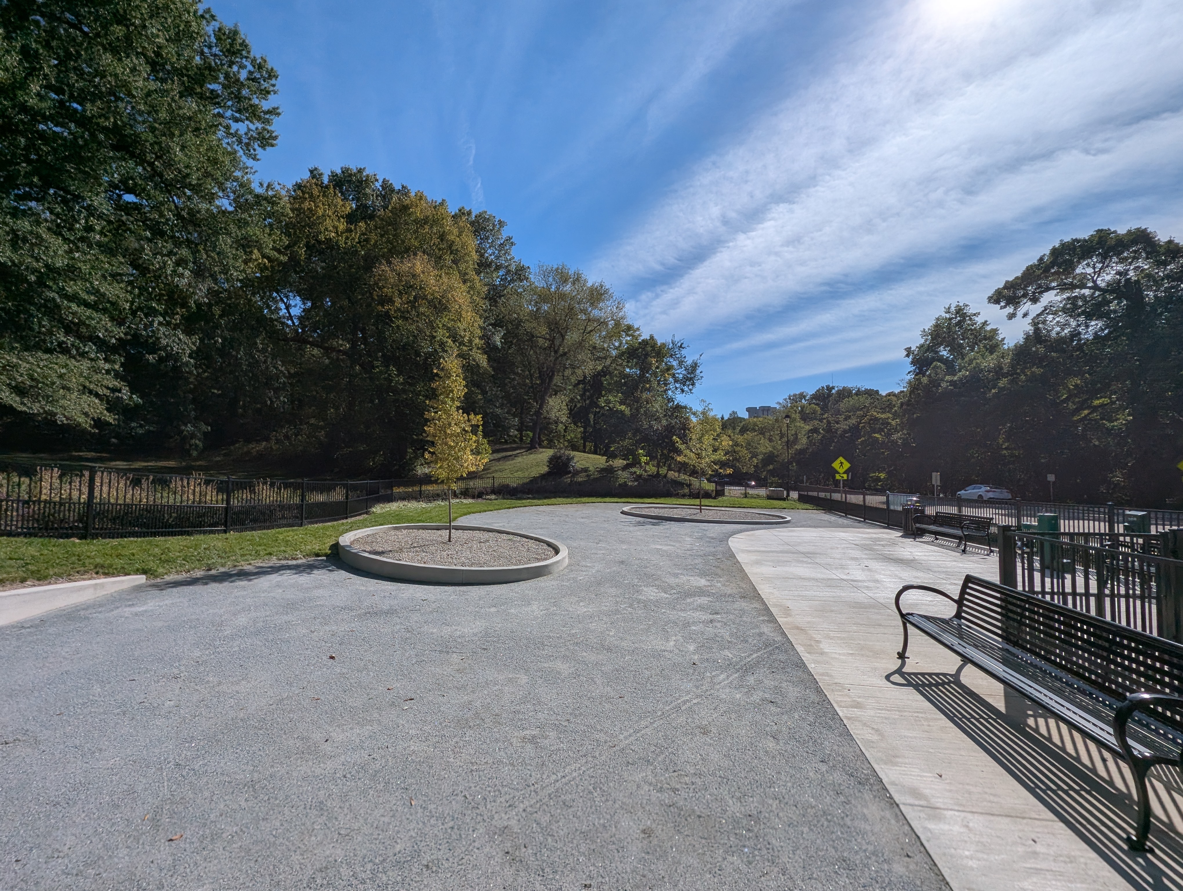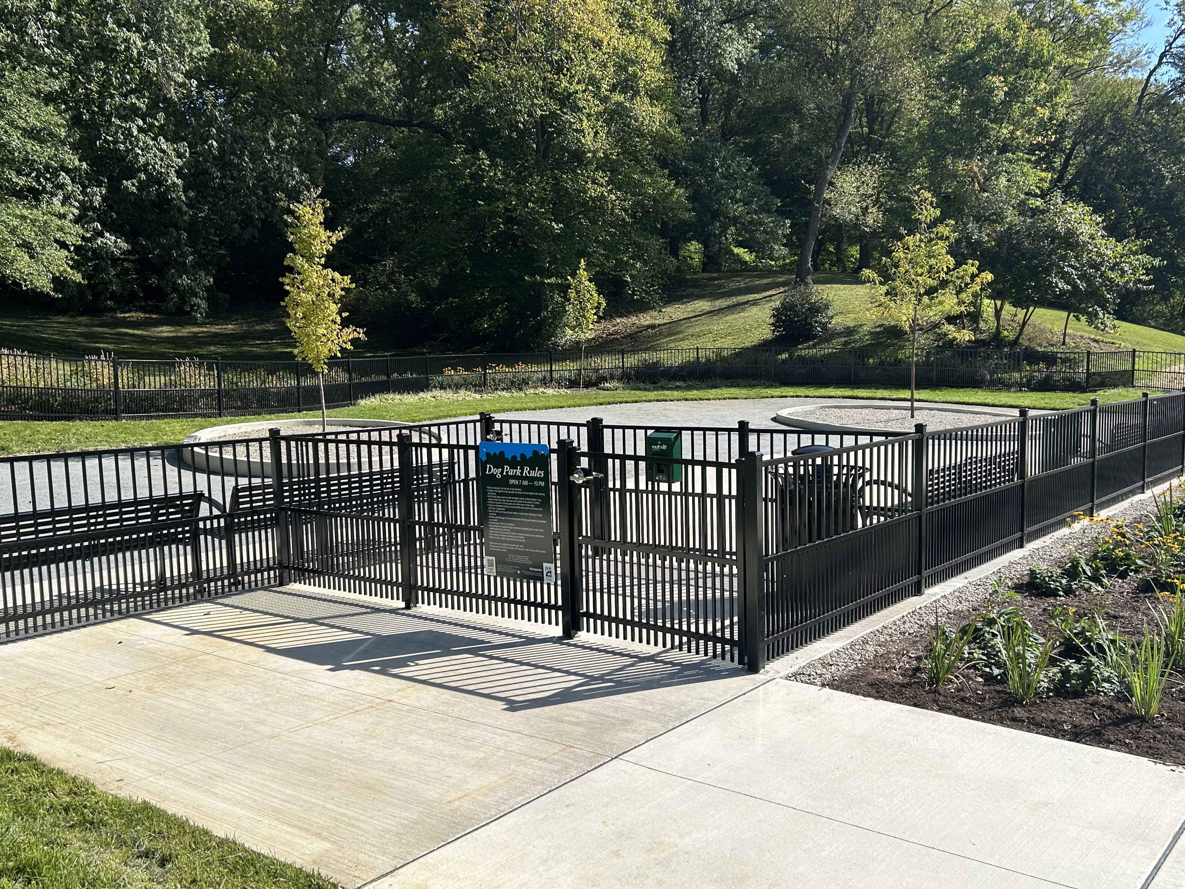 The dog park is located south of the northeastern entrance to Burnet Woods off Jefferson Avenue. The project features benches, adds 3 trees, 3 planting beds, black fencing, water service for maintenance, a drinking fountain with pet bowl, trash receptacles, an accessible entrance area, erosion control, and of course plenty of doggie bags. The project also adds a 2,800-sf prairie meadow providing native habitat attracting birds and pollinators and helping with erosion control via deep root plantings.
