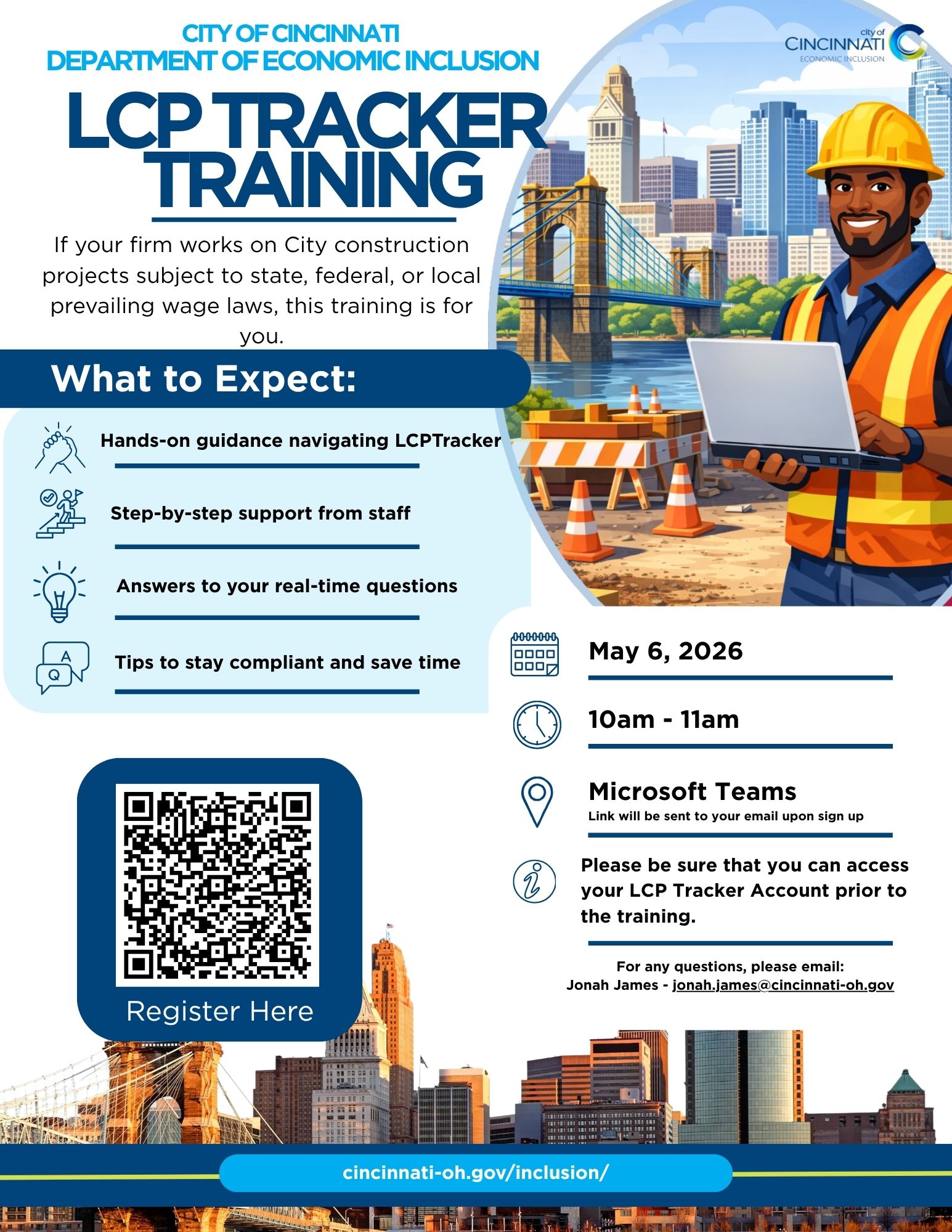 The Department of Economic Inclusion’s goal is to ensure economic opportunity and inclusion for all citizens seeking to do business with the City of Cincinnati and serve as a catalyst for the growth of minority- and women-owned businesses in the City and throughout the region.