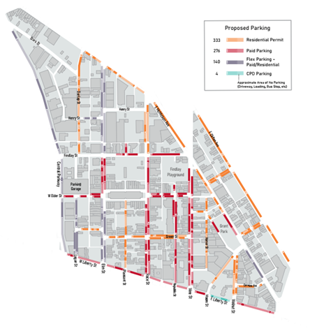 [Proposed map; see above, the addition of residential permitting and paid parking, which allows us to better prioritize residents and local businesses]
