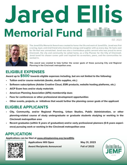 The Cincinnati Section of the American Planning Association - Ohio is thrilled to announce the Jared Ellis Memorial Fund.